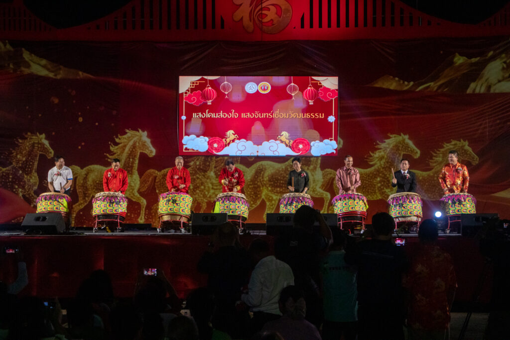 ที่ลานน้ำพุริมบึงแกนนคร เขตเทศบาลนครขอนแก่น จังหวัดขอนแก่น นายขจรเกียรติ รักพานิชมณี ผู้ว่าราชการจังหวัดขอนแก่น เป็นประธานเปิดงานเทศกาลโคมไฟนานาชาติใต้แสงจันทร์ 2026” อย่างยิ่งใหญ่อลังการ ภายใต้แนวคิด สานสายใย 3 แผ่นดิน : ไทย–จีน–เวียดนามแสงโคมส่องใจ แสงจันทร์เชื่อมมิตรภาพนานาชาติ โดยมียางหลิว หงเหมย กงสุลใหญ่สาธารณรัฐประชาชนจีนประจำจังหวัดขอนแก่น นายดิงห์ ฮว่างลิงห์ กงสุลใหญ่สาธารณะรัฐสังคมนิยมเวียดนาม นายสมสัก วิลัยทอน กงสุลใหญ่สาธารณรัฐประชาธิปไตยประชาชนลาว ประจำจังหวัดขอนแก่น นายกเทศมนตรีนครขอนแก่น นายบวร เสรีโยธิน นายกสมาคมปึงเถ่ายกง-ม่า ขอนแก่น นายชัยกร ลีศิริกุล ประธานคณะกรรมการศาลเจ้าปึงเถ่ากงม่า จังหวัดขอนแก่น และชาวขอนแก่นร่วมเปิดงานอย่างคับคั่ง