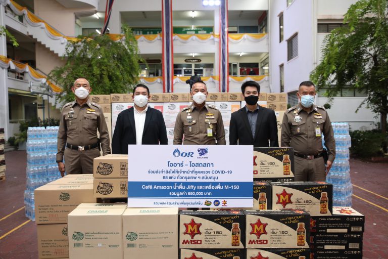 โออาร์ – โอสถสภา มอบเครื่องดื่มบำรุงกำลัง M-150 กระชายดำ น้ำดื่มจิฟฟี่ กาแฟดริปและขนม จากคาเฟ่ อเมซอน สนับสนุนการปฏิบัติงานของเจ้าหน้าที่ประจำจุดตรวจ 88 แห่งในกรุงเทพฯ