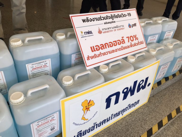 “พลังงานร่วมใจสู้ภัยโควิด-19” กระทรวงพลังงาน ร่วมกับ กฟผ. และบริษัท ปตท. จำกัด (มหาชน) ส่งมอบแอลกอฮอล์ให้โรงพยาบาลส่งเสริมสุขภาพตำบล ในจังหวัดขอนแก่น จำนวน 1,240 แกลลอน
