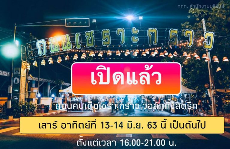 บุรีรัมย์เตรียมเปิดถนนคนเดินเซราะกราววอล์กกิ้งสตรีท เริ่มเสาร์-อาทิตย์นี้ 4 โมงเย็นถึง 3 ทุ่ม และยังจะไม่ให้มีการแสดงบนเวทีแต่อย่างใด