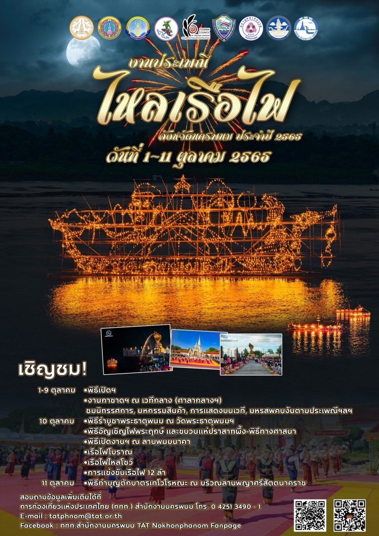 ททท.สำนักงานนครพนมชวนเที่ยว …. งานประเพณีไหลเรือไฟ จังหวัดนครพนม ประจำปี 2565วันที่ 1-11 ตุลาคม 2565