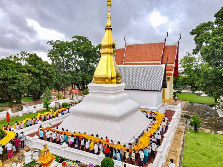 สาธุชน! หลั่งไหลร่วมพิธีห่มผ้าพระธาตุขามแก่น ประจำฤดูฝน